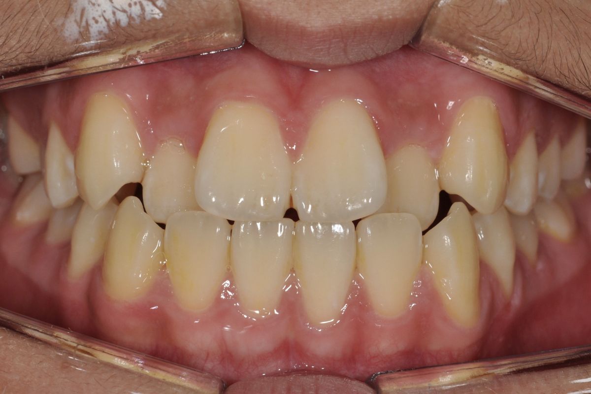 Crowding or misaligned teeth can appear when the jaw is smaller compared to the size of the teeth. If there are misaligned teeth, it is difficult to brush them properly, which can lead to cavities or gum diseases. Orthodontic treatment is recommended to prevent these issues and can also be done for esthetic purposes.